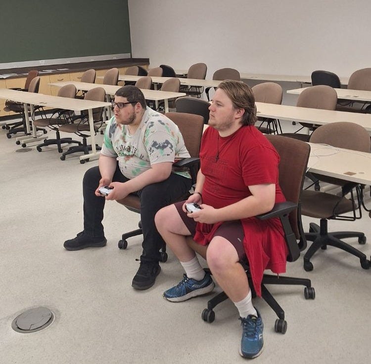 “Collin Wilson and Mohammad Alsheikh playing a friendly game of Madden”. Photo by Tyce Alumbaugh.