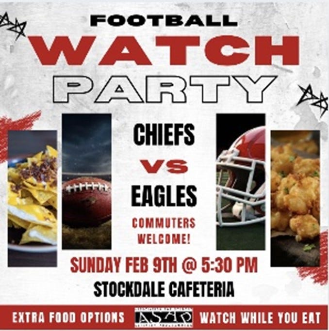 ASAP’s watch party in the Stockdale Center’s main dining hall was to “create a place where the students can come together and enjoy a game of football,” said Jackson Dempich.
