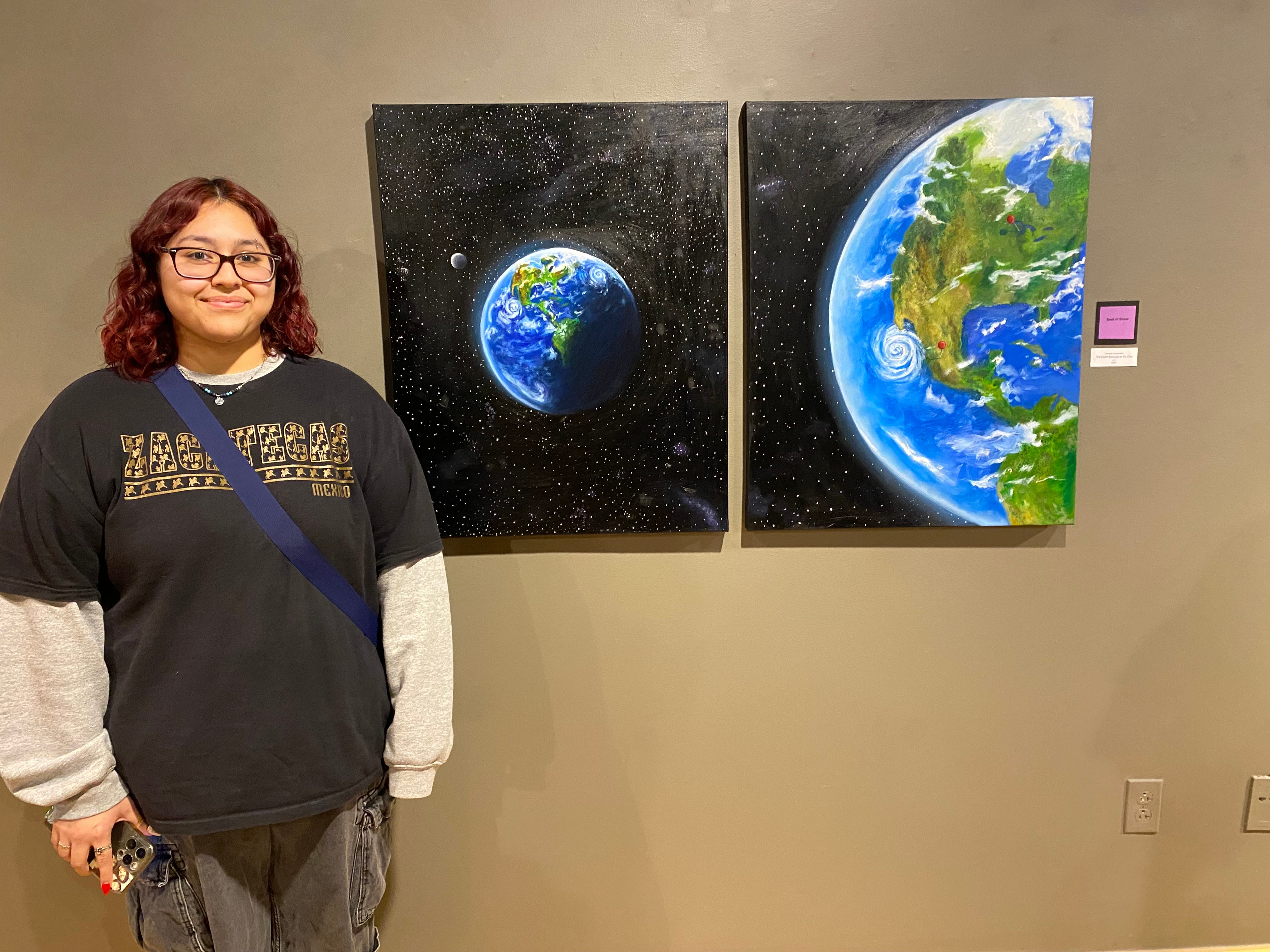 Andrea Castaneda won the award for her painting series “The Earth Belongs to No One”. She also won best in both drawing and painting for her “Raices” series and “Recuerdos en Azul” painting.