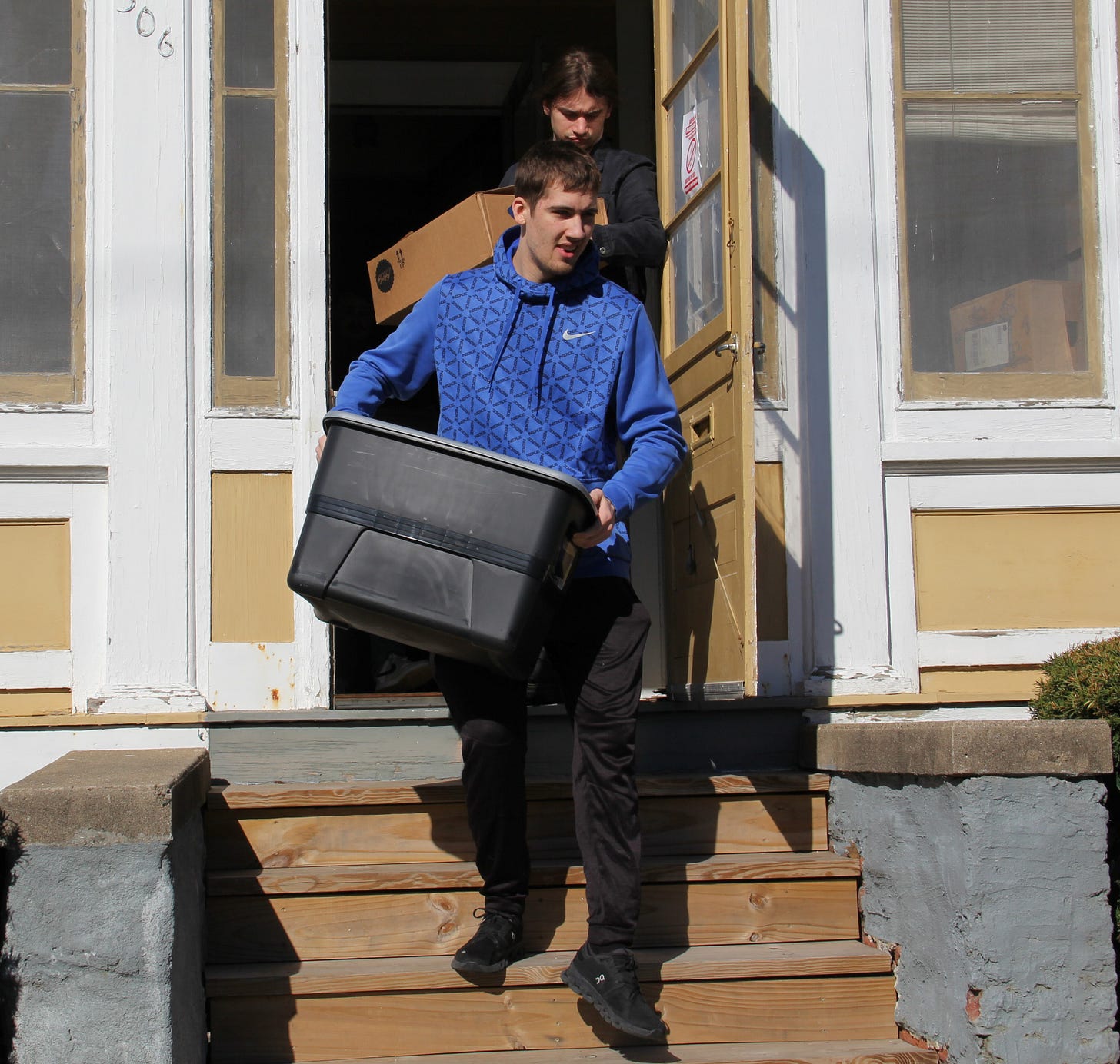 ZBT members, Jacee Goodrich and Ivan Iverson, helping move boxes. Photo by Barry McNamara.